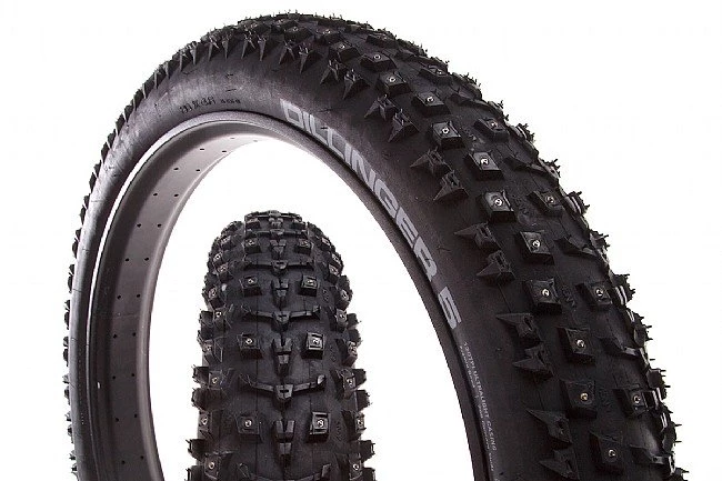 Blast through winter conditions with the 45Nrth Dillinger 5 Studded Fat Bike Tire. Widely spaced lugs help shed snow across the ultra-wide contact patch, and for icy conditions, concave-tipped aluminum-carbide studs bite into frozen terrain with a sharp attack angle that further sharpens with use for winter performance that lasts.